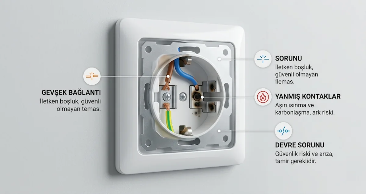 • Fiziksel İnceleme: Prizin dış plastik çerçevesinde sararma, kararma veya erime izi olup olmadığına bakın. Bu izler içeride ciddi bir ısınma olduğunun fiziksel kanıtıdır.